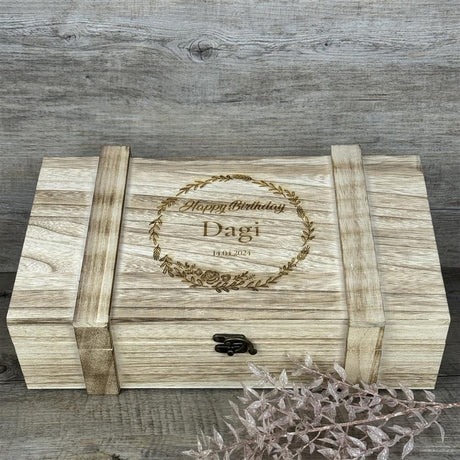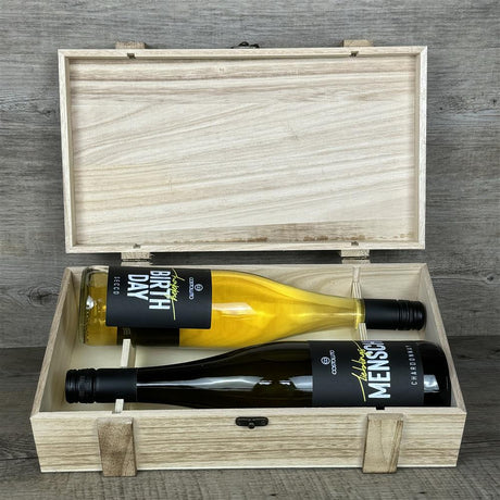 inkl. MwSt. zzgl. VersandNormaler Preis €24,00Grundpreis /Nicht verfügbarAuf LagerWeinkiste für zwei Flaschen Wein, Beschriftung 'Happy Birthday', personalisierbar