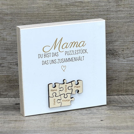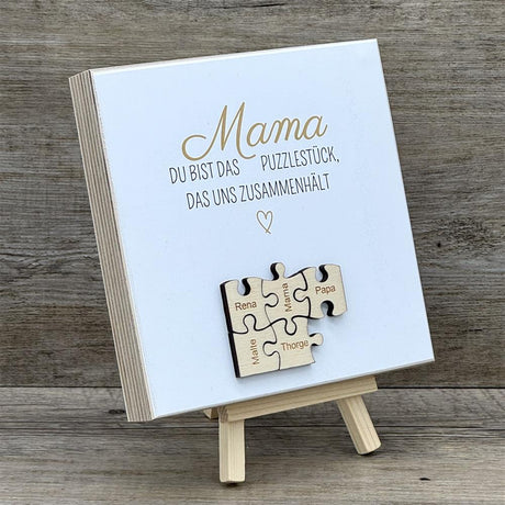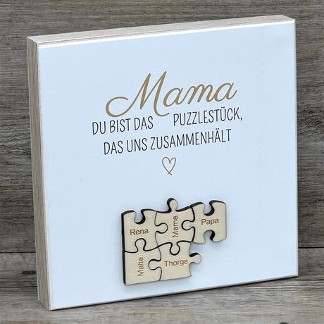 Wooden Block - Mama, du bist das Puzzlestück, personalisiert