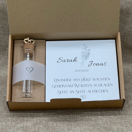 inkl. MwSt. zzgl. VersandNormaler Preis €20,00Grundpreis /Nicht verfügbarSehr geringer Bestand (4 Einheiten)Geschenkset Hochzeit, personalisiert