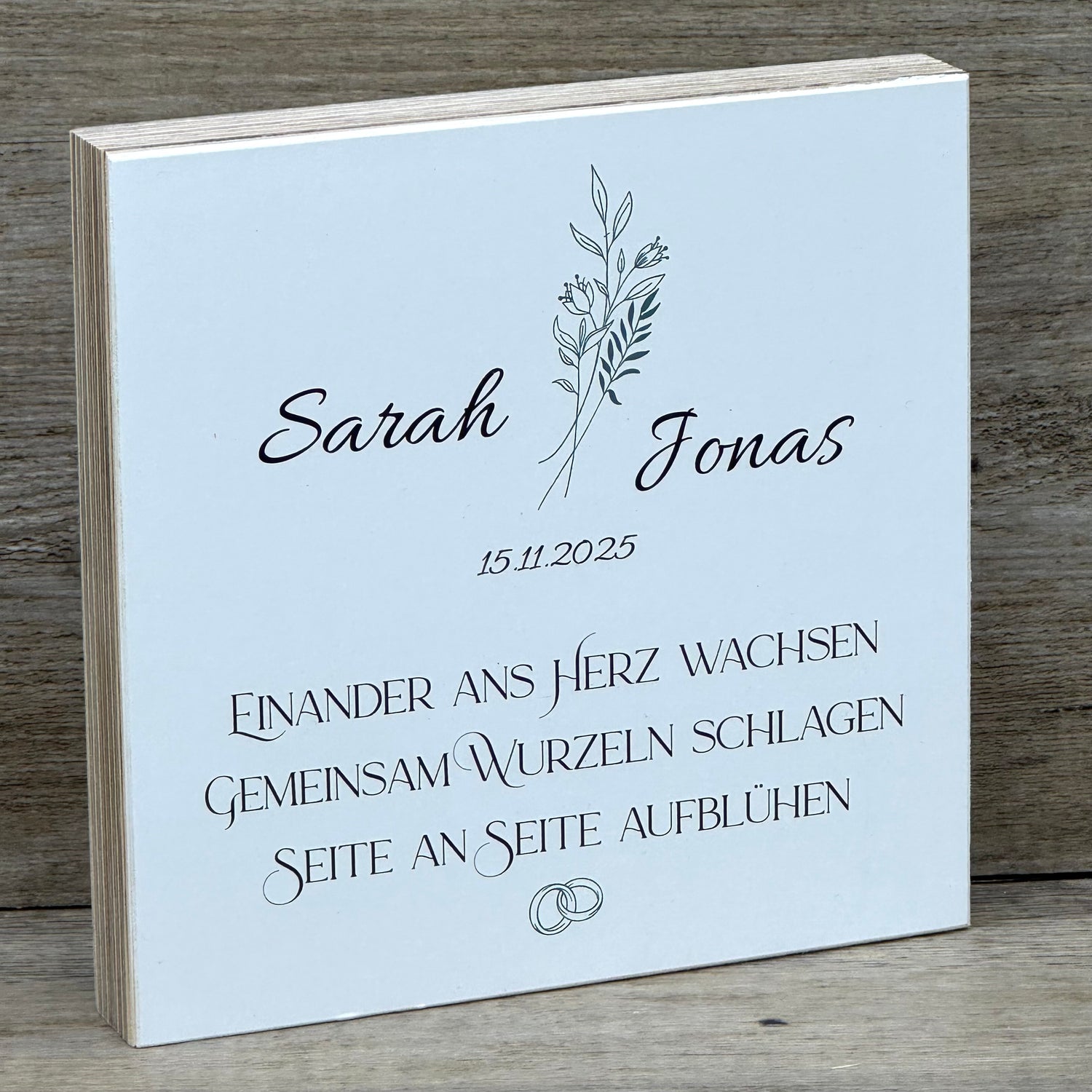 Der Block besteht aus hochwertigem Holz und eignet sich ideal als dekoratives Erinnerungsstück.