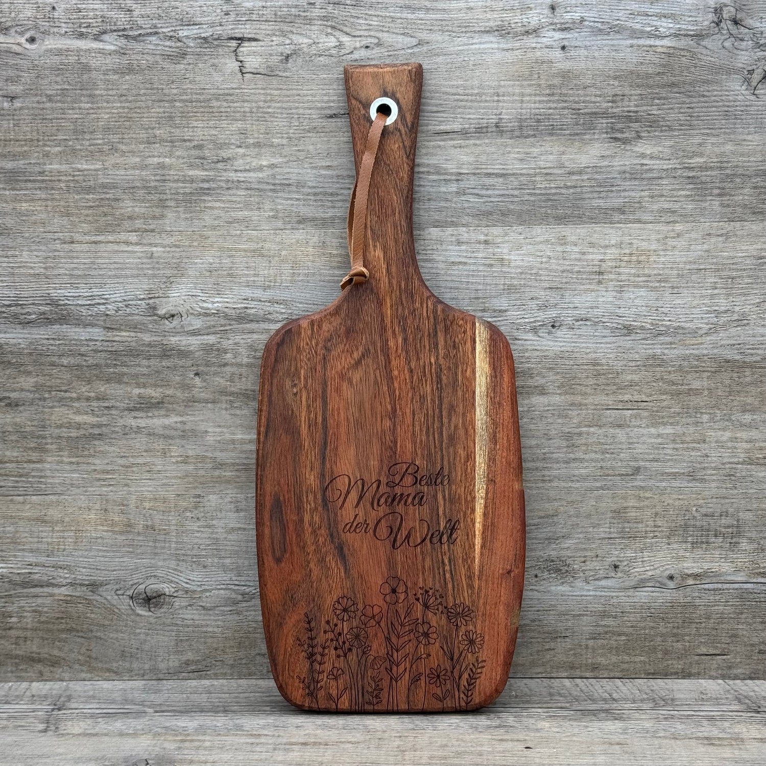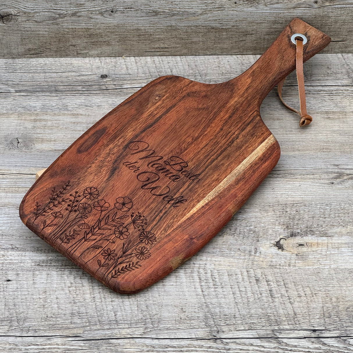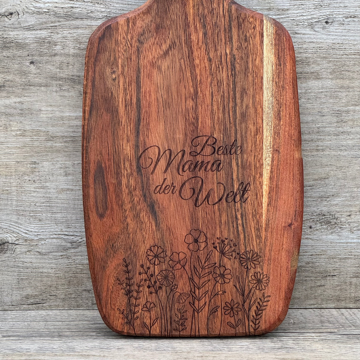 Verschenke zum Muttertag ein Stück Natur mit liebevoller Botschaft. Die Lasergravur mit zarten Blumenmotiven und dem Schriftzug „Beste Mama der Welt“ macht es zu einem einzigartigen Geschenk, das von Herzen kommt.