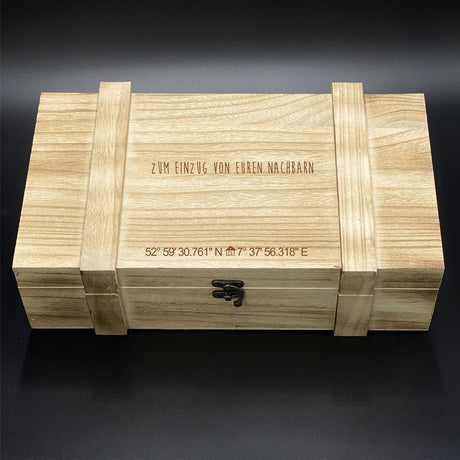 inkl. MwSt. zzgl. VersandNormaler Preis €28,00Grundpreis /Nicht verfügbarSehr geringer Bestand (2 Einheiten)Weinkiste für zwei Flaschen Wein, Beschriftung 'Zum Einzug', personalisierbar