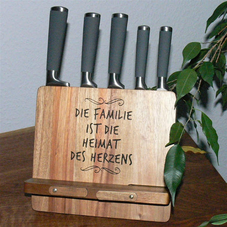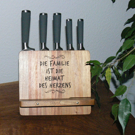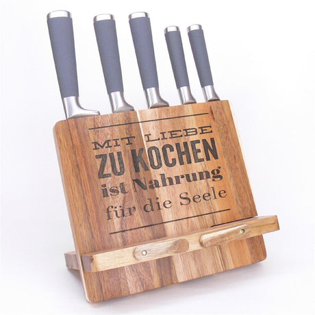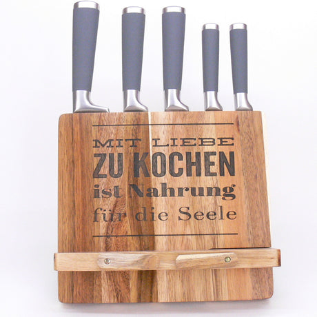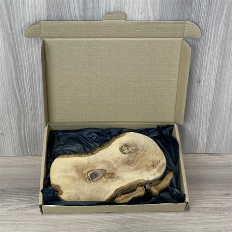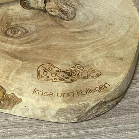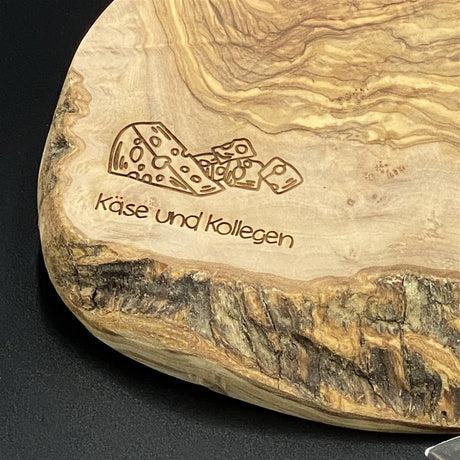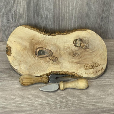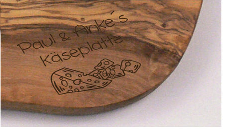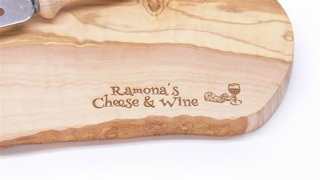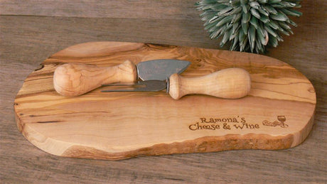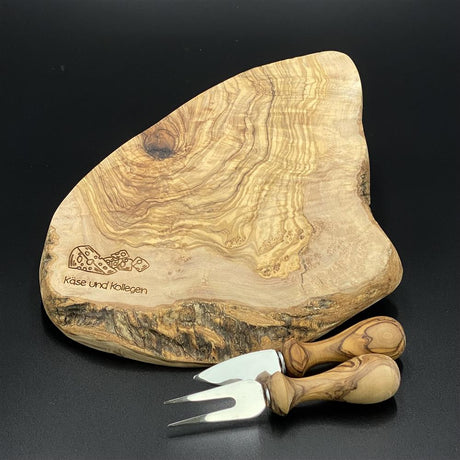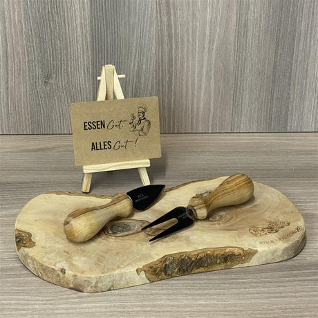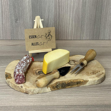 Käsebrett aus Olivenholz mit Besteck, personalisierbar