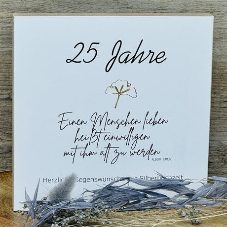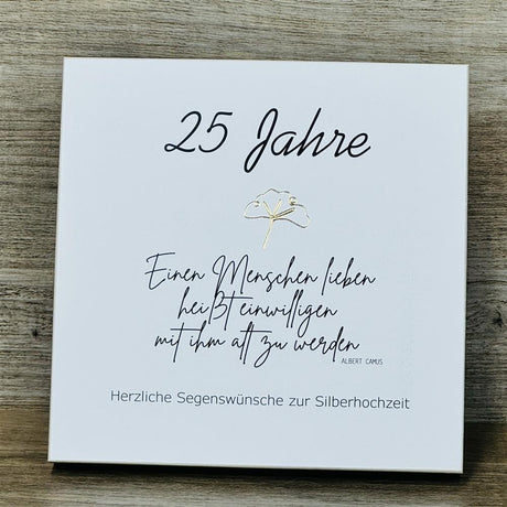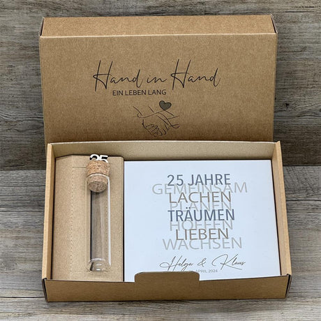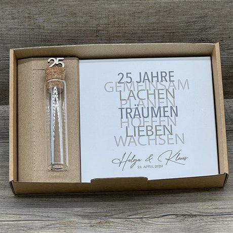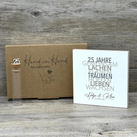 inkl. MwSt. zzgl. VersandNormaler Preis €25,00Grundpreis /Nicht verfügbarAuf LagerGeschenkset Silberne Hochzeit, personalisierbar
