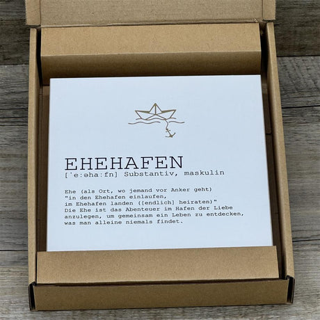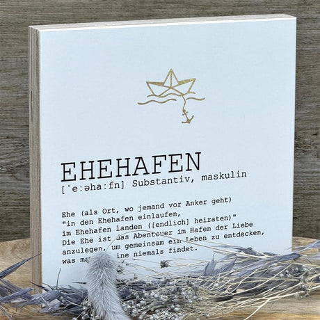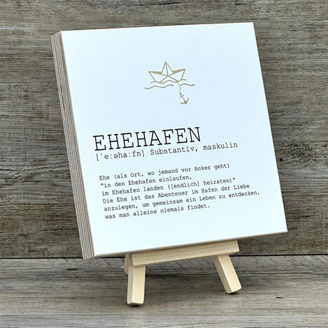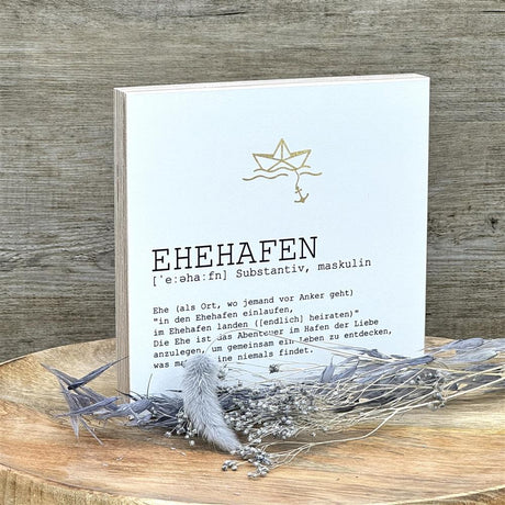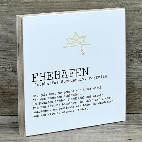 inkl. MwSt. zzgl. VersandNormaler Preis €16,00Grundpreis /Nicht verfügbarAuf LagerWooden Block - Ehehafen mit Goldprägung