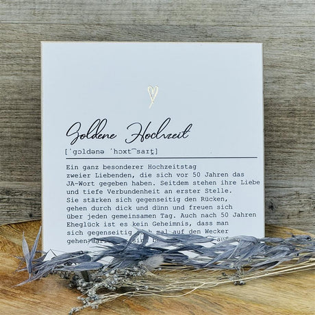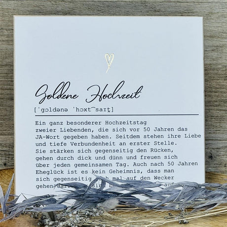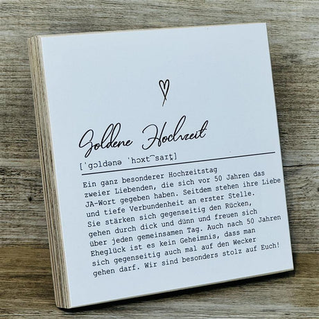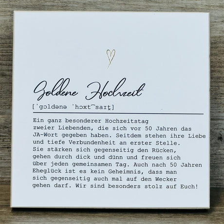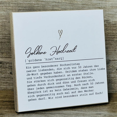 inkl. MwSt. zzgl. VersandNormaler Preis €18,00Grundpreis /Nicht verfügbarAuf LagerWooden Block - Goldene Hochzeit mit Goldprägung