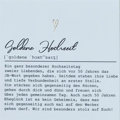 Wer ein halbes Jahrhundert verheiratet ist, der hat gemeinsam Höhen und Tiefen, Freuden und Sorgen erlebt. Die gemeinsame Ehe hat alle Herausforderungen gemeistert und sich zu einer felsenfesten Partnerschaft entwickelt, die beiden Liebenden Halt und Unterstützung spendet.