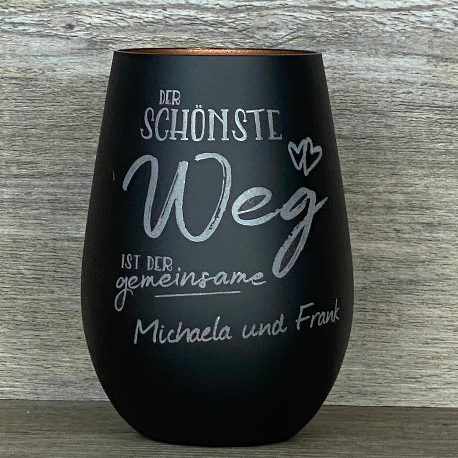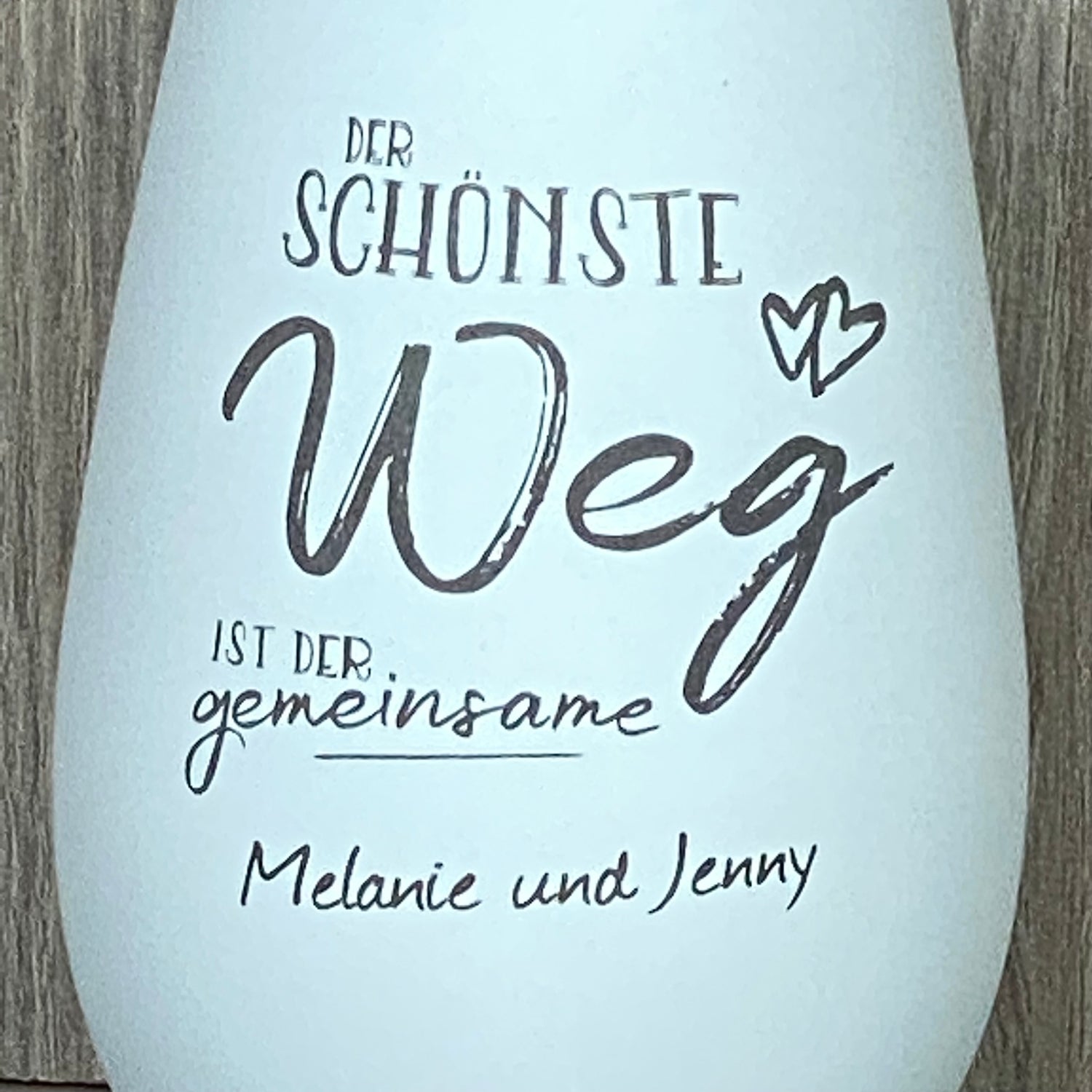 Das Windlicht 'Der schönste Weg ist der Gemeinsame' ist ein wunderschönes Geschenk zur Hochzeit oder zum Hochzeitstag.Auf Wunsch mit Personalisierung