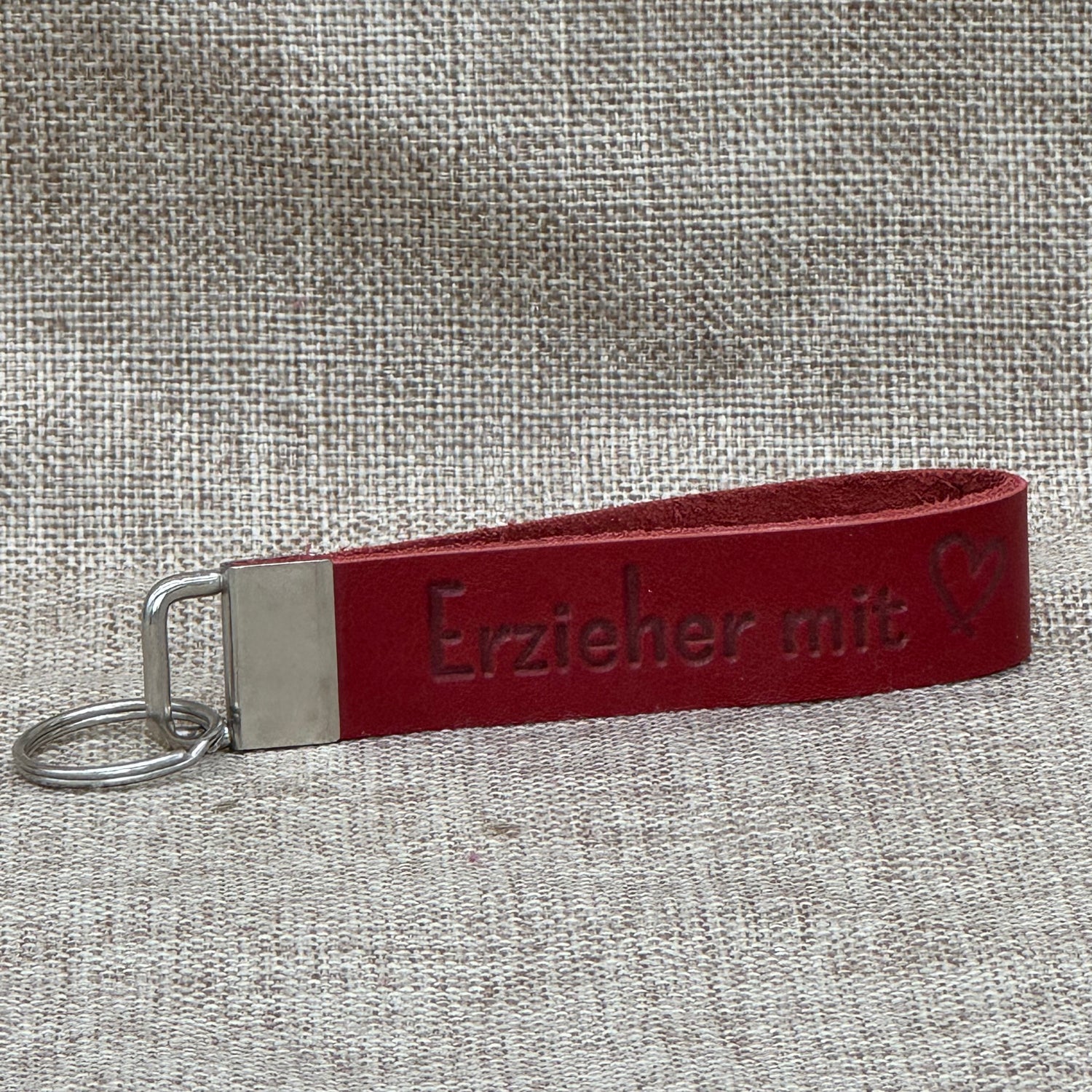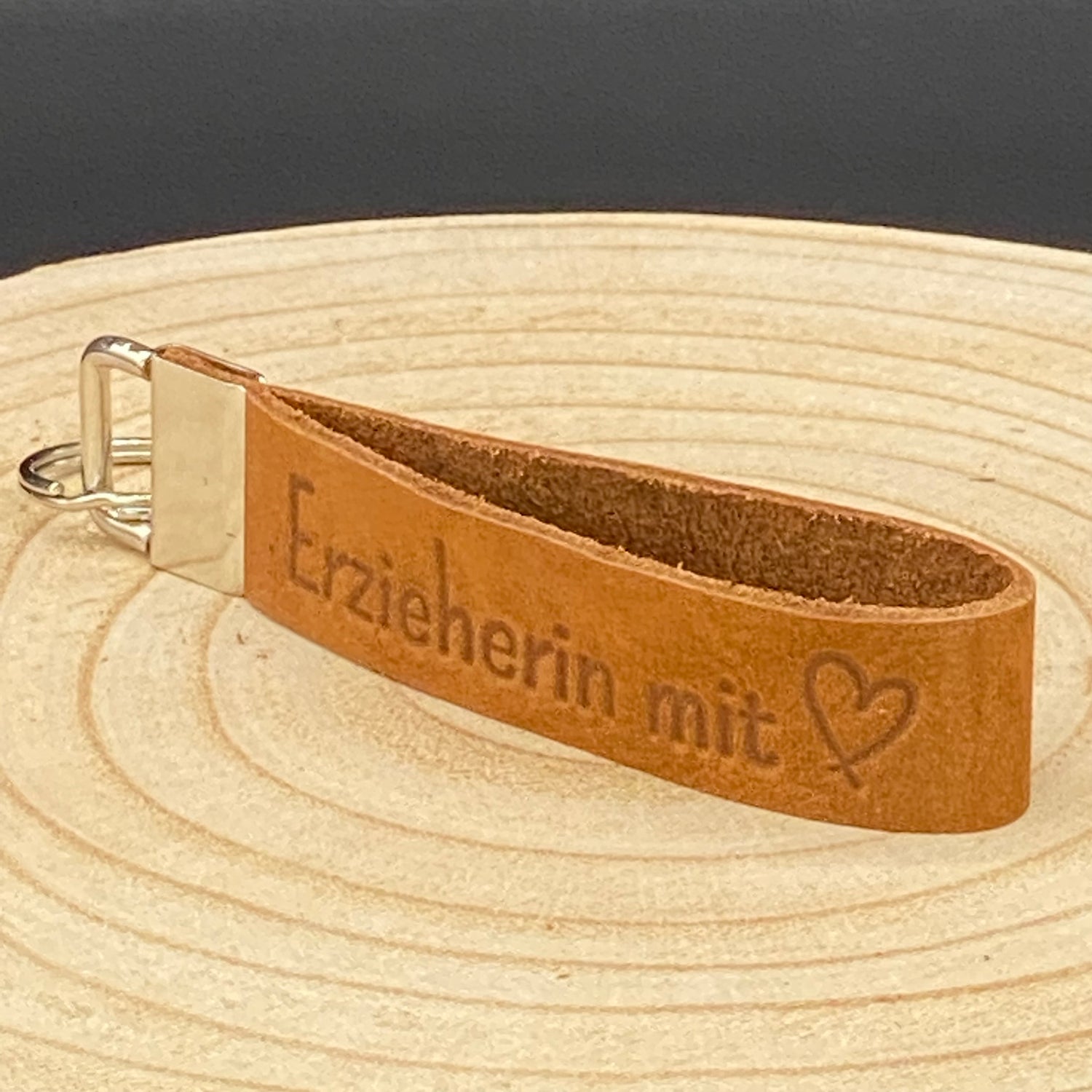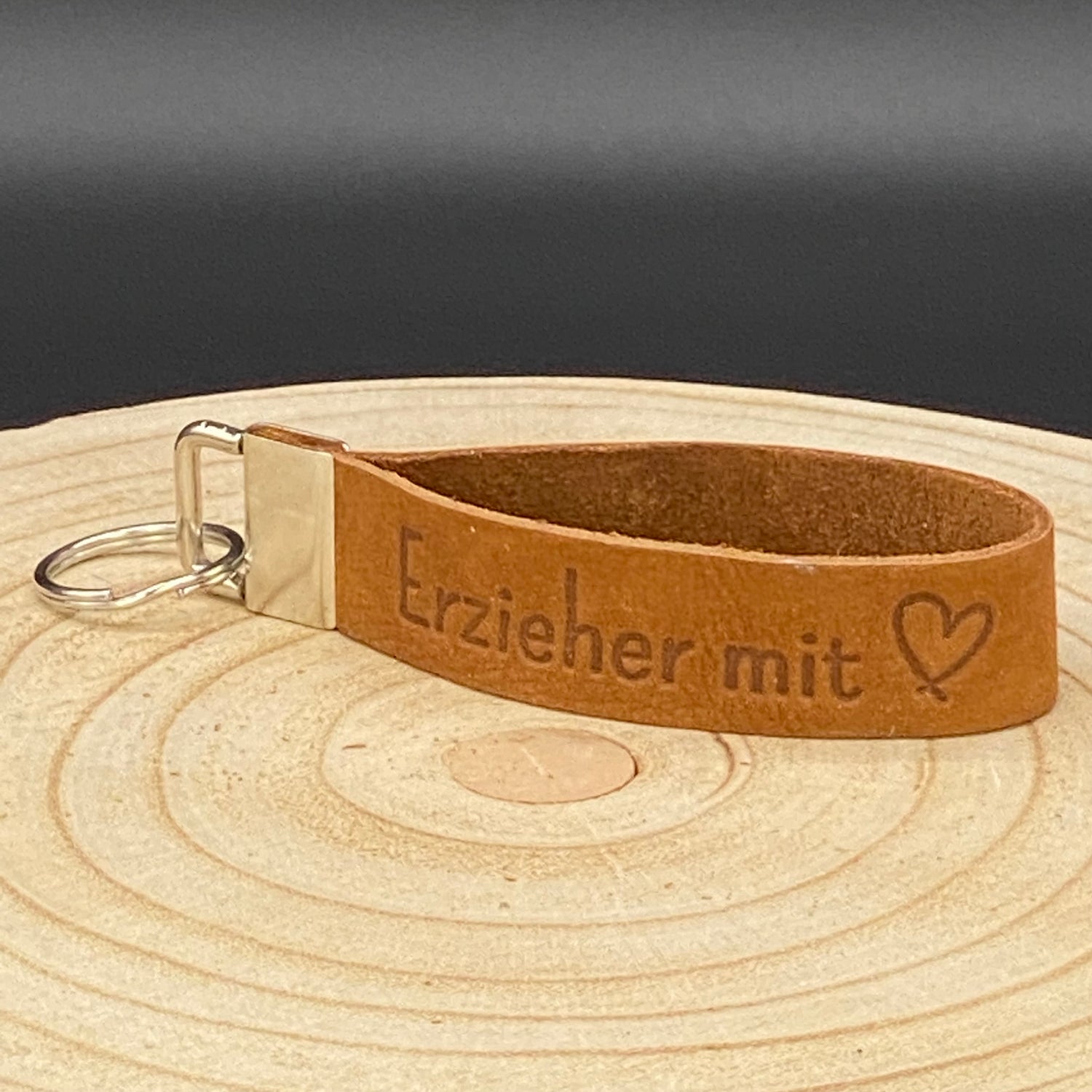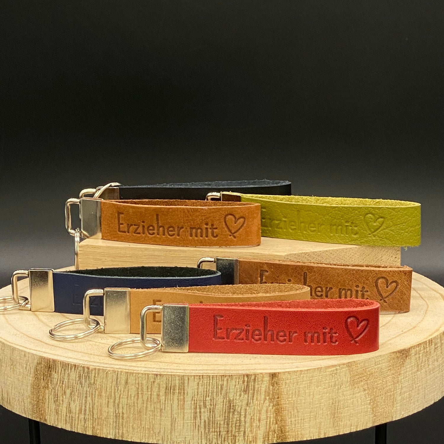 Schlüsselband aus Echtleder – „Erzieher/Erzieherin mit Herz“