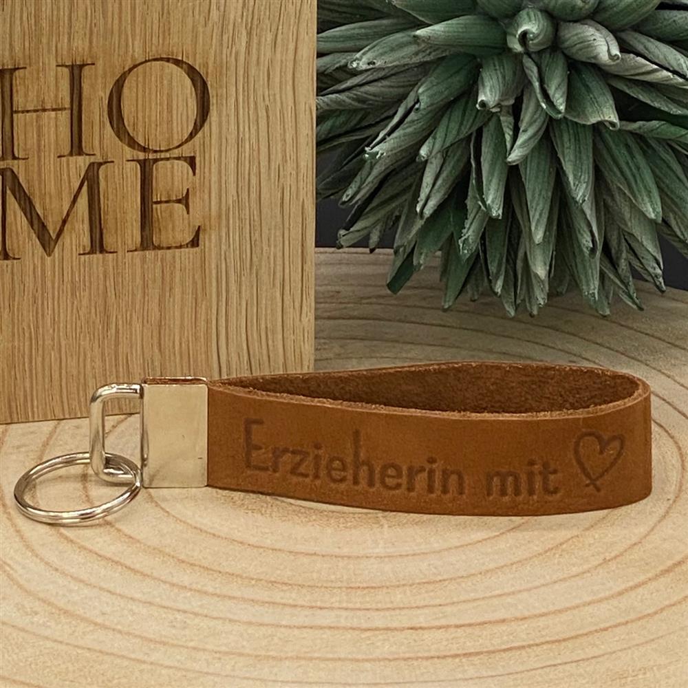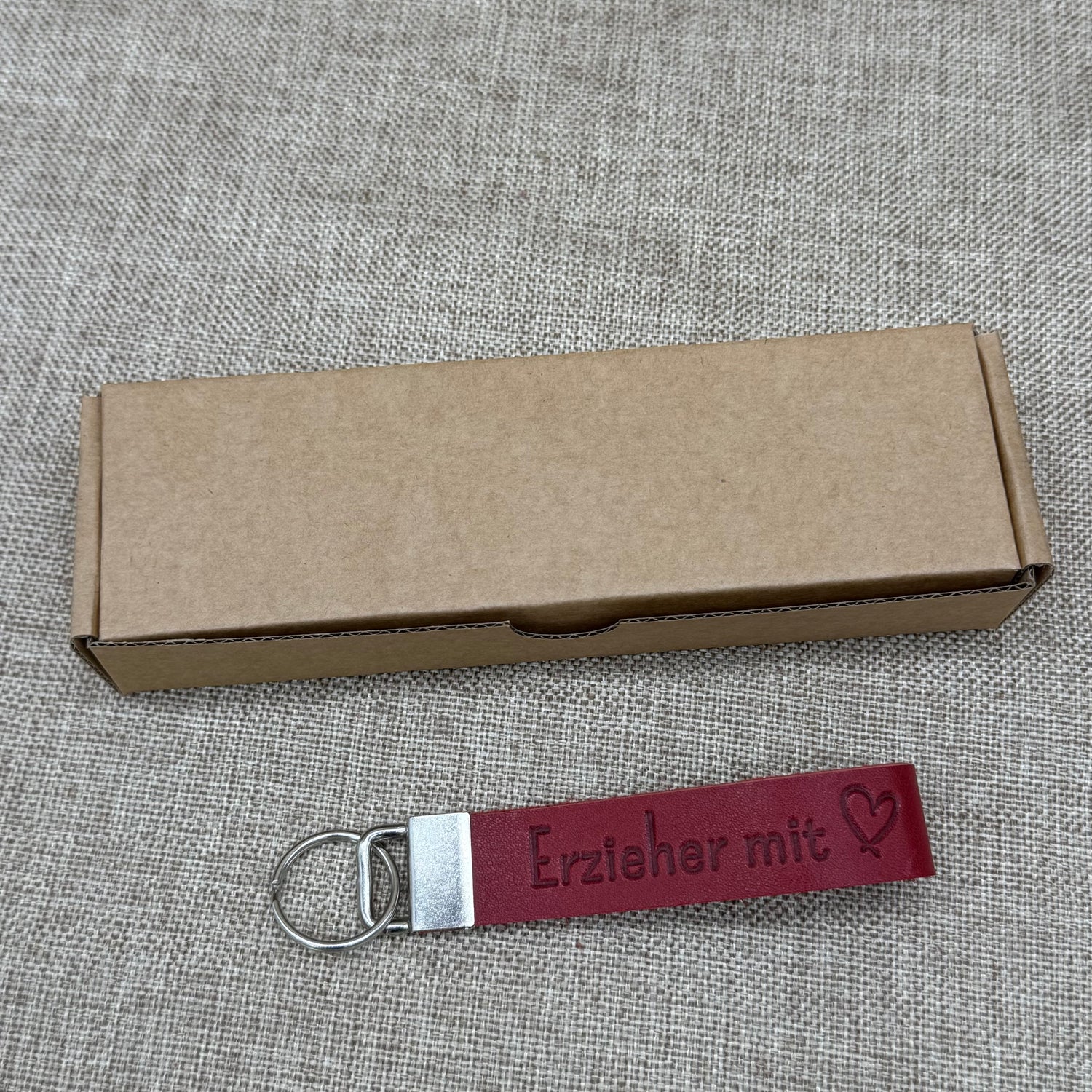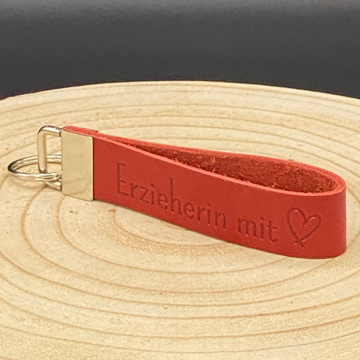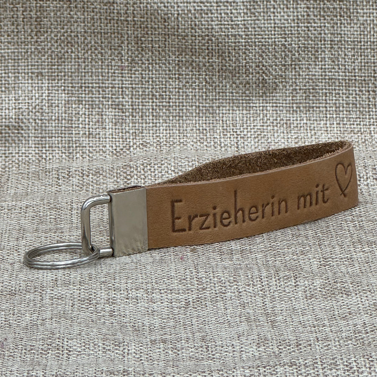 Schlüsselband aus Echtleder – „Erzieher/Erzieherin mit Herz“