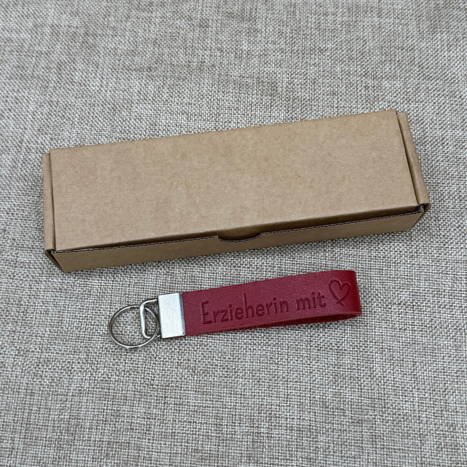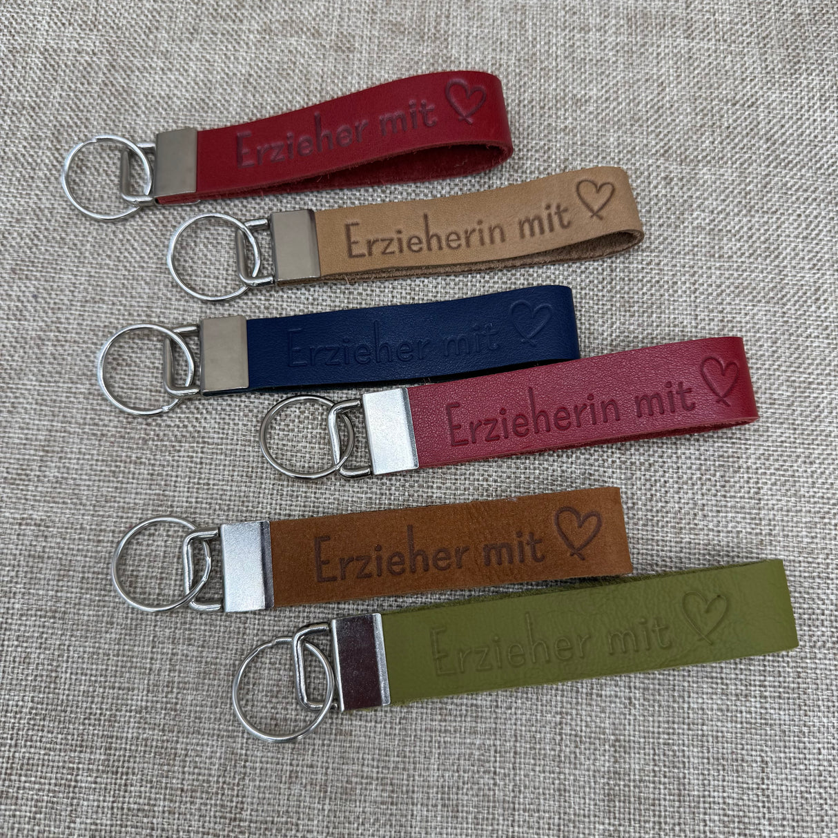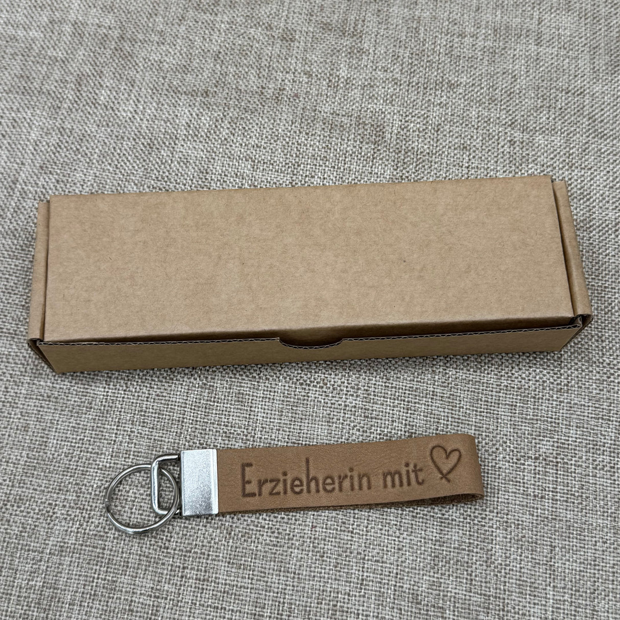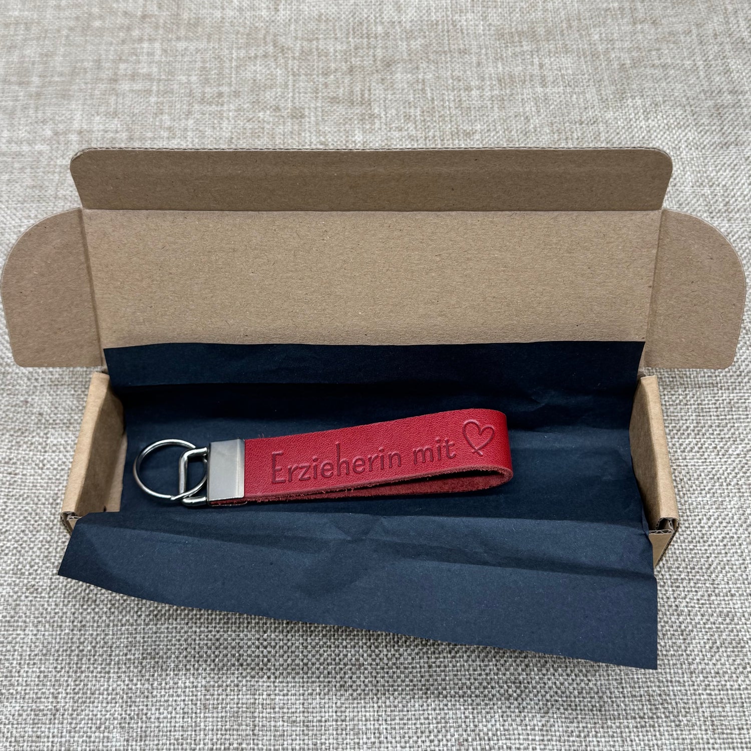 Schlüsselband aus Echtleder – „Erzieher/Erzieherin mit Herz“